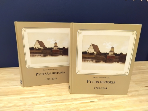 Pyhtäänlinnan infossa (Motellikuja 4) myynnissä olevia tuotteita